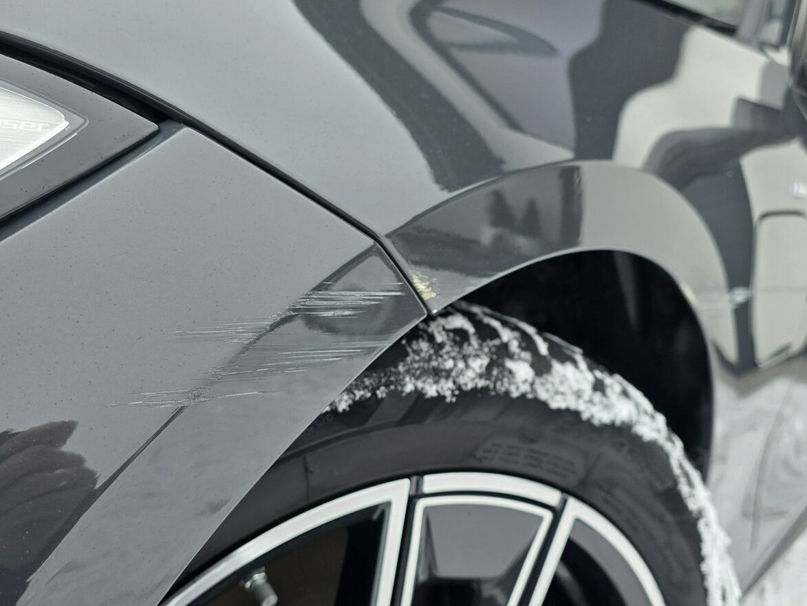 Jest przerysowana z lewej strony + prawy błotnik jak widać na zdjęciach. Żaden element nie wymaga wymiany, tylko lakierowanie. Maska i lampy nie naruszone. żadna poduszka nie otwarta. Do wymiany są tylko naboje od maski od ochrony pieszych (maska nie uszkodzona).